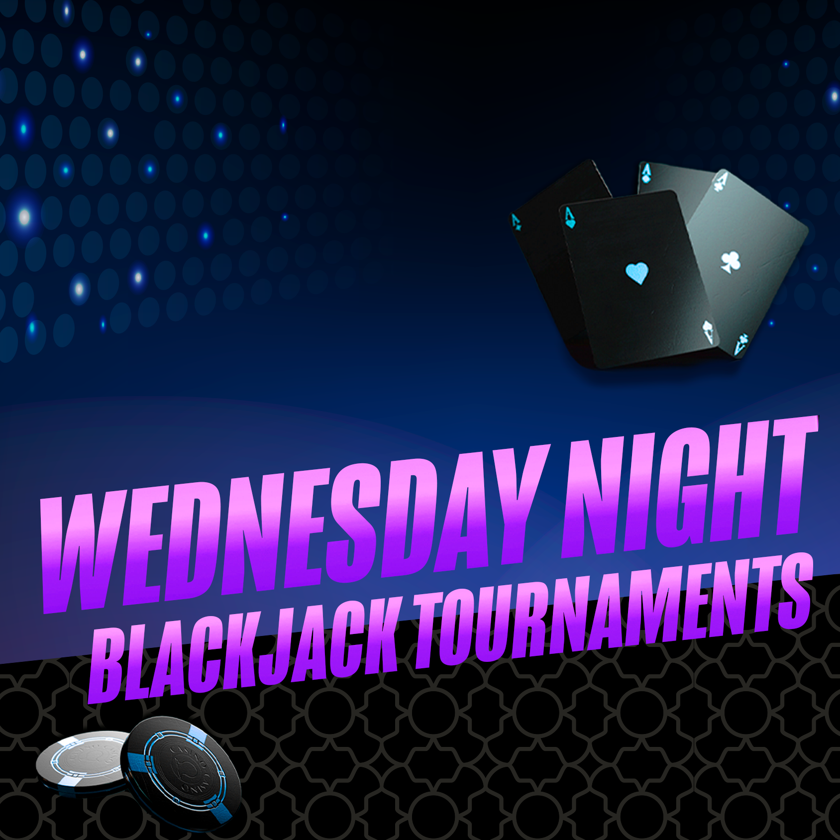 - If necessary, ties will be broken by a playoff of three hands to determine place winner. Play will continue with same chip amount retained when tie occurred.